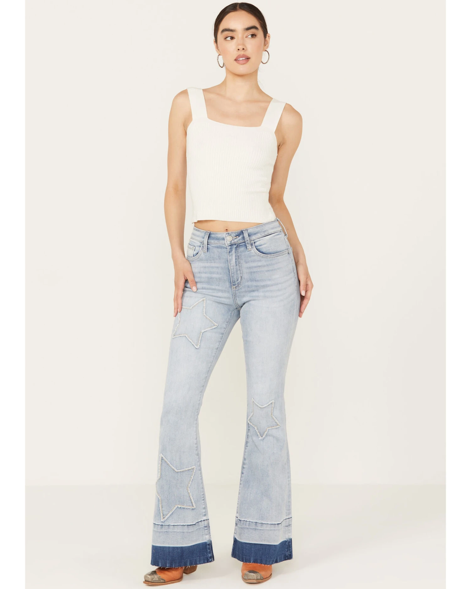Be the first to review “Ceros Women’s Light Wash High Rise Starred Flare Stretch Jeans” Cancel reply