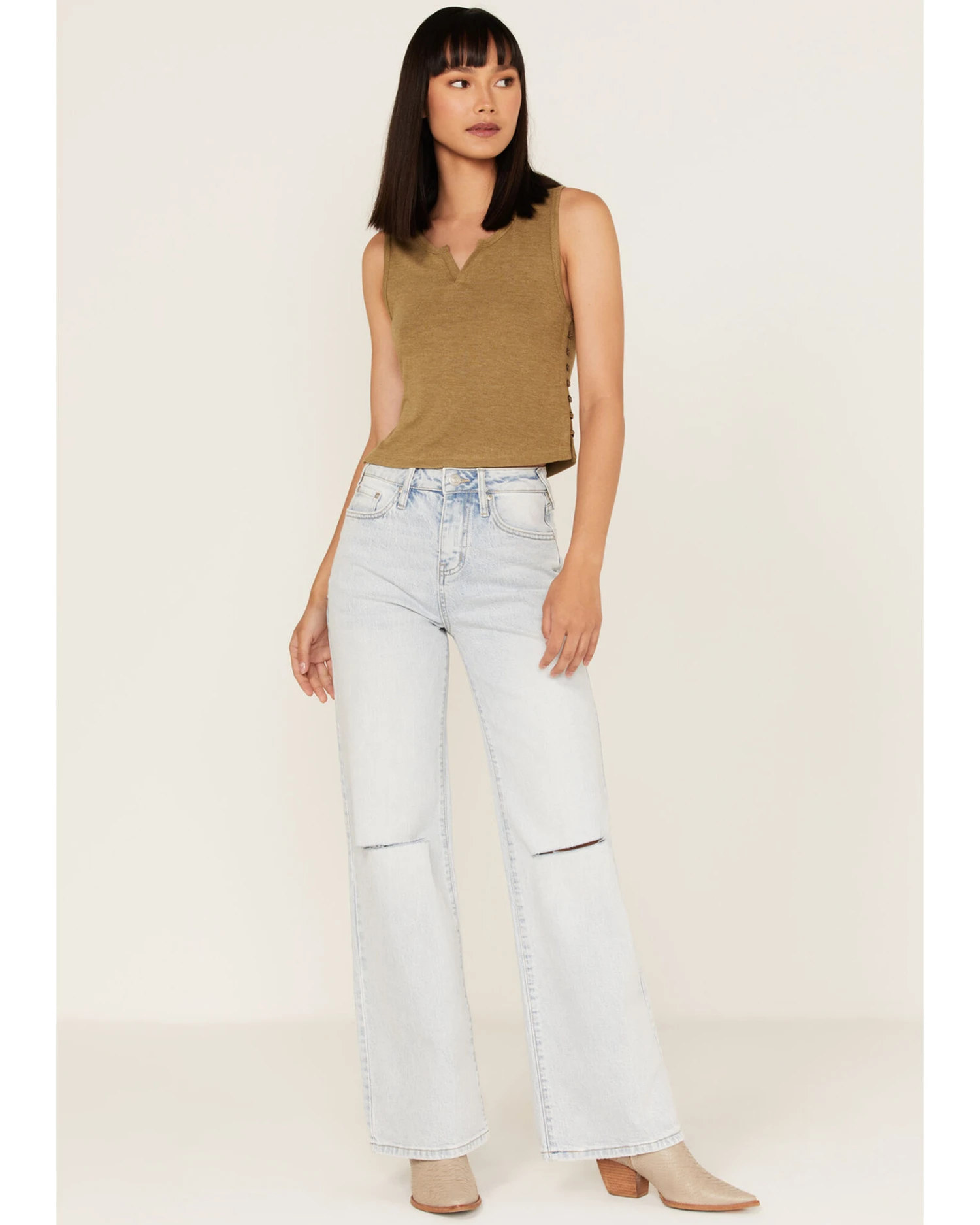 Be the first to review “Cleo + Wolf Women’s Light Wash High Rise Distressed Knee Flare Jeans” Cancel reply