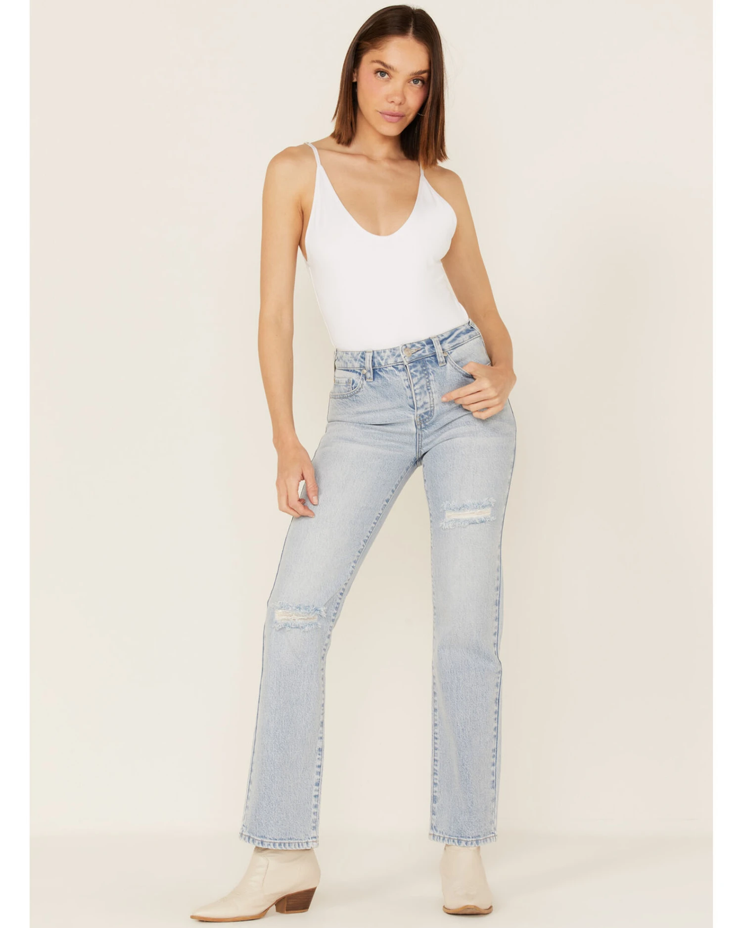 Be the first to review “Cleo + Wolf Women’s Light Wash High Rise Distressed Straight Jeans” Cancel reply