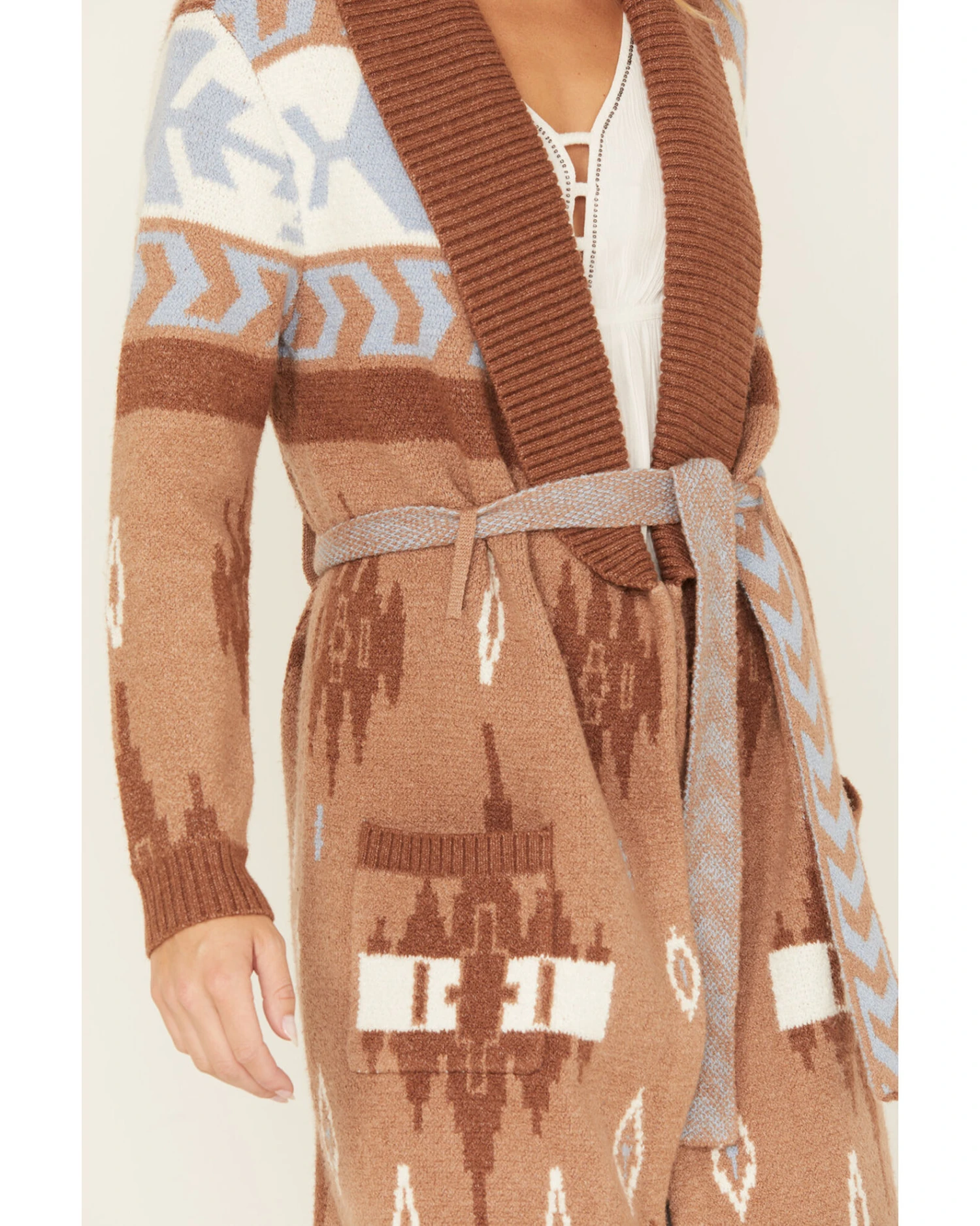 - Brown with blue, white and brown Southwestern print