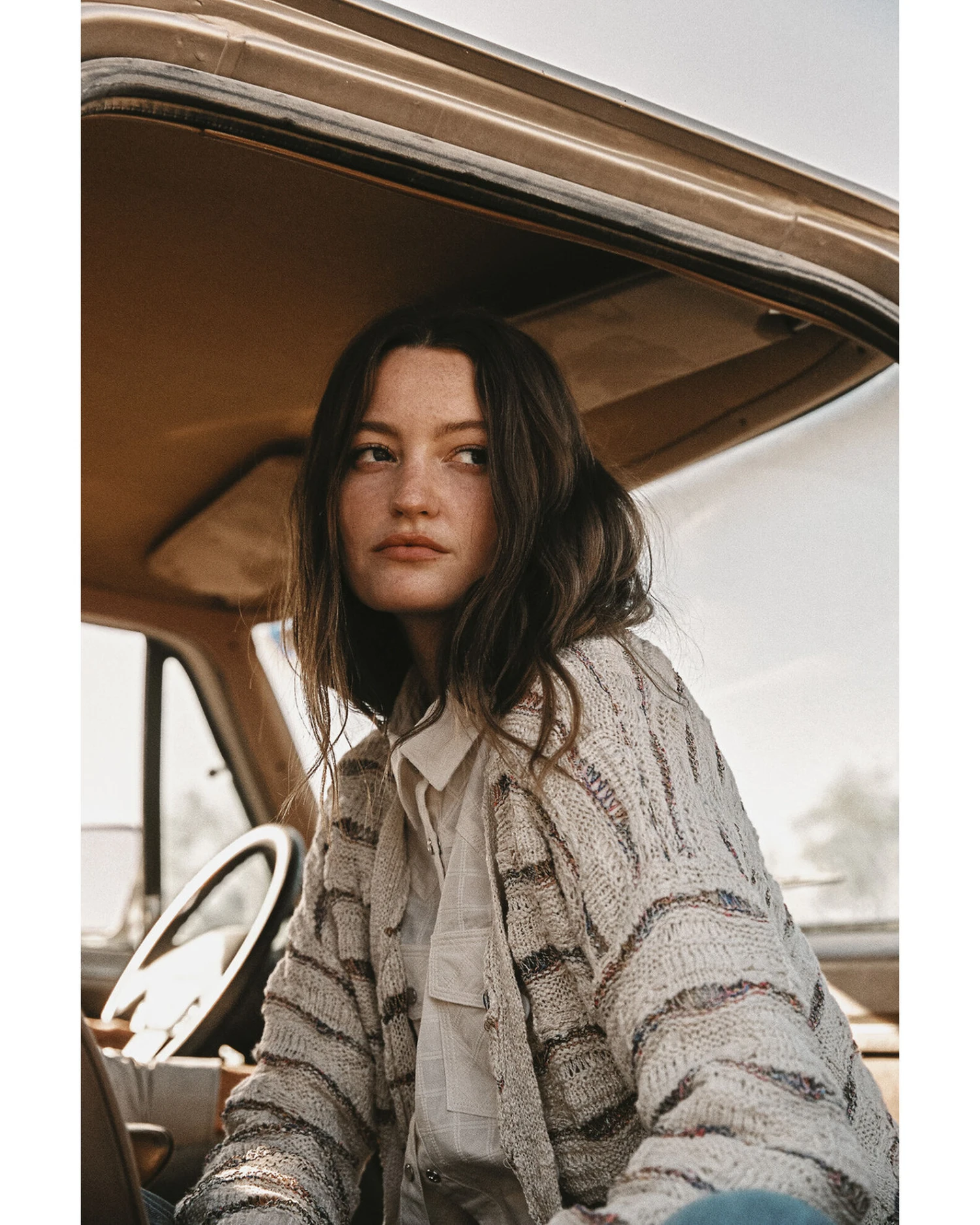 - Cream and multicolored striped design