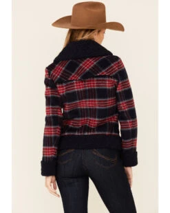 Powder River Outfitters Women’s Red & Navy Plaid Button-Front Wool Sherpa Coat